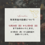 2025年12月26日 / 最終更新日時 : 2025年12月26日 adoTKshKY_sys@7914 information 1月の診療日程と年始のお休みについて 皆さん、こんにちは。 京都府の京田辺市で鍼灸院をしております「高橋鍼灸院」です 1月の診療日程と、年始のお休みについてお知らせいたします。 年末年始は12月28日(日)~1月4日(日)まで休診となり、1月5日(月)より通 […]